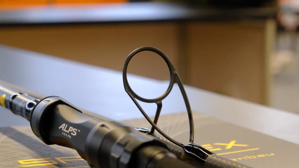 Uiteraard is de hengel uitgerust met moderne functies zoals een matzwarte aluminium molenhouder van ALPS, extra slanke en lichte matzwarte ‘Minima’ KW geleideogen van American Tackle (met startoog in maat 50). Ook zit er een extra slanke, doorlopende en antislip ‘full-shrink’ handgreep aan de achterkant.